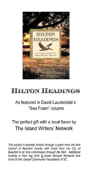 Pieces depict the diversity of Island Writers’ Network members and offer an assortment of fiction, memoir, humor, and poetry. In addition to literary works, Hilton Headings contains eight pages of color photographs of the Lowcountry and its flora and fauna. A stunning photograph of a Lowcountry dock is featured on the cover.